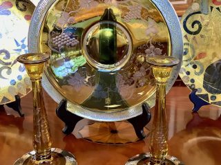 LEFT:ANTIQUE IMARI CHARGER 16″DIAMETER $195