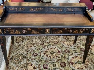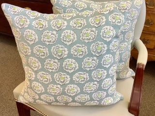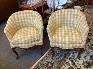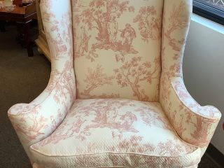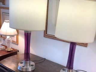 PAIR OF ETHAN ALLEN PURPLE UPHOLSTERED ACCENT CHAIRS EBONY FRAMES 29″W X 24″D X 36″H $1095 PAIR