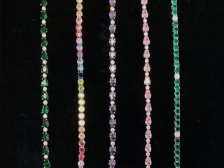 FASHION JEWELRY ENAMEL HEART STERLING NECKLACES W/ VERMEIL OVERLAY GREEN/RED/BLUE 18″L $70 EACH