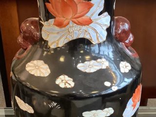 RIGHT:IMARI PLATE W/ FLORAL CENTER 12″DIAMETER $150